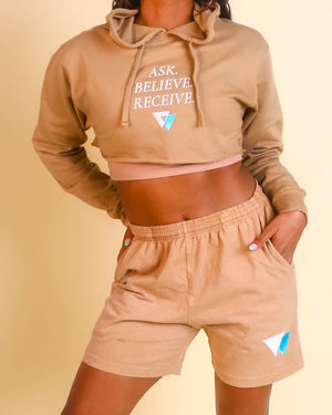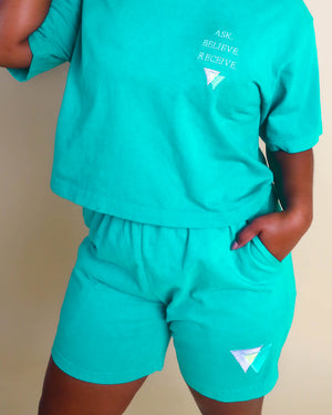This is a Unisex style short and is sized more similar to Men’s sizing. They feature an elastic waistband with a drawstring + side pockets for convenience. Pair with the Pocket Tee for a cool look or the Active Crop for a sporty look.
